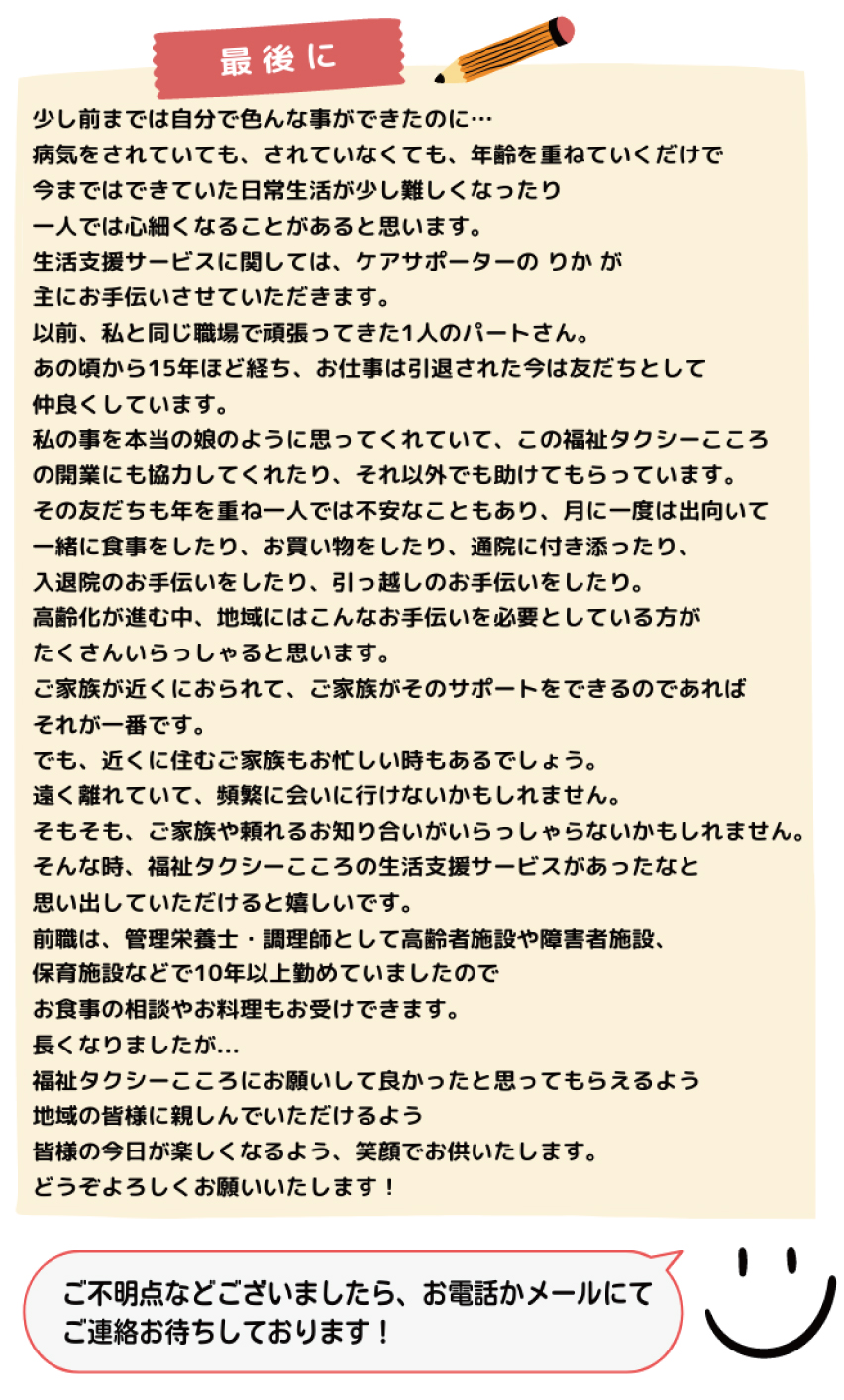 お出かけ、お買い物の付き添い